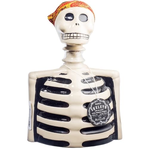 Los Azulejos Skeleto Blanco Tequila is a hand crafted artisan tequila from the Tequila Valley in the heart of Mexico's tequila country. Presented in quality ceramic day of the dead style bottles that are individually hand made and hand painted. 40% ABV Tasting Notes: Sweet savory notes like a sweet olive brine and a lime citrus with salt - develops very quickly racing each other for your attention. Drying but bright taste slight alkali tang and touches of leather. Very clean tasting.