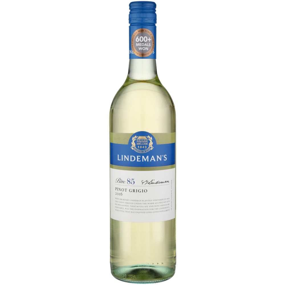 Loved around the world Lindeman's Bin Series wines are approachable in style consistent in quality with global appeal. Designed to be opened enjoyed and shared time and time again these are wines people simply love to drink. Lindeman's most well-known range began with the iconic Lindeman's Bin 65 Chardonnay which was first launched in 1985 in response to the popularity of Lindeman's approachable and fruit-driven style of wines in the northern hemisphere. Lindeman's Bin 85 Pinot Grigio features aromas of fruit salad peach fig rock melon and toasty oak with a medium bodied fresh crisp finish. Vintage Conditions: The growing season leading up to the 2017 vintage was challenging. A wet and cold Spring season impacted early shoot development with mild summer conditions interrupted by rain events. A season of extreme sometimes isolated weather events resulted in some vineyards being hit by storm and hail. With a cool start to the season and with good soil moisture prof